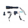 CONJUNTO LINTERNA ALUMINIO PROFESIONAL LED Linterna profesional fabricada en aluminio de alta resistencia. LED CREE Q5 de 3W. Con dos tipos de cargador. Para vigilancia, policía, ambulancia, bomberos, etc.